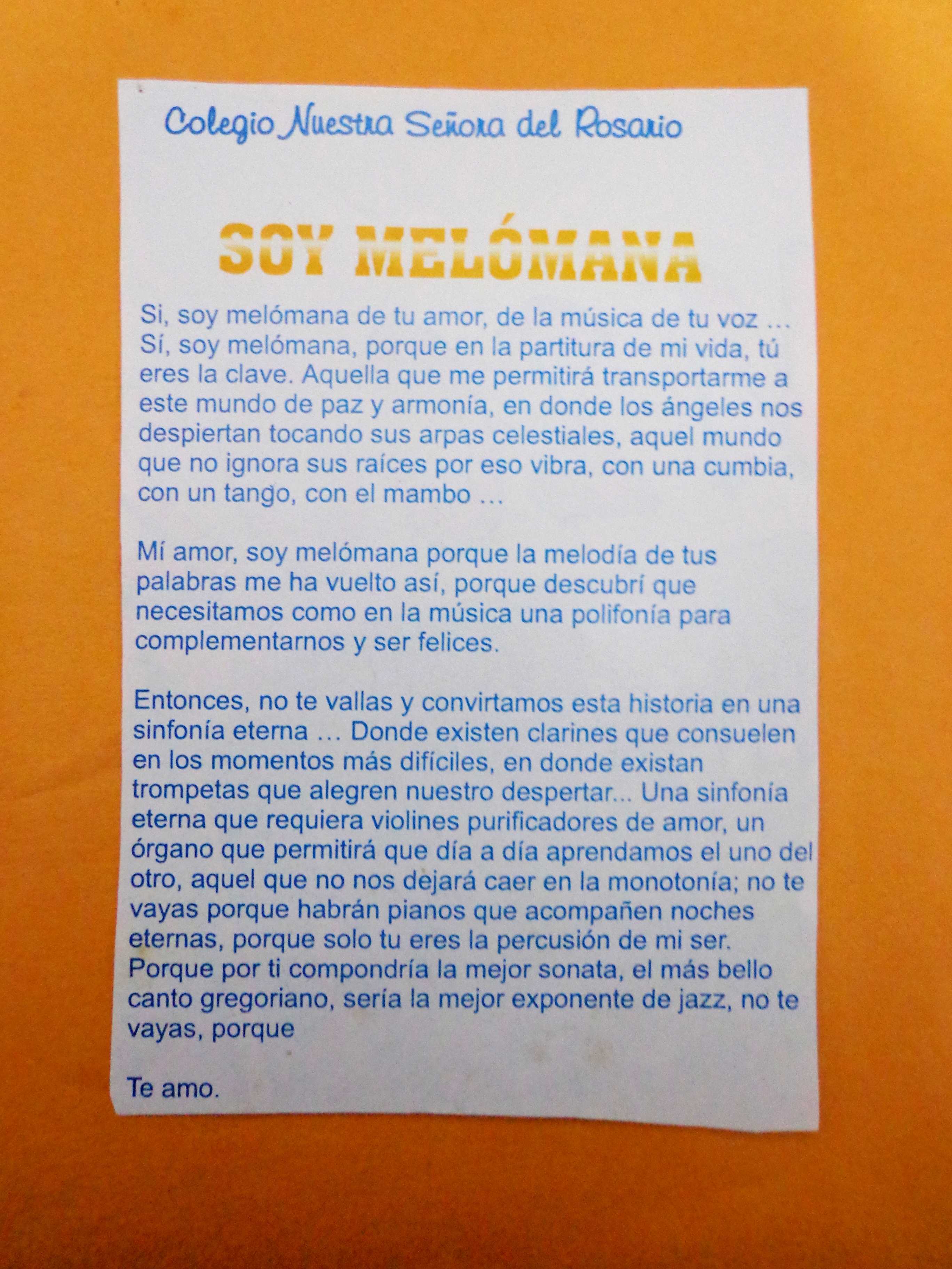 El texto original del periódico se lo regalé a mi amiga pintora, Leni Daiara Ladino Duarte. Es una gran alegría saber que ella lo conserva como un tesoro y que entonces para ella también lo escribí.