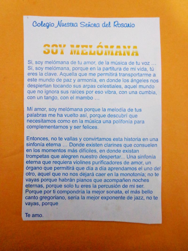 Porque envié el texto y lo publicaron en el periódico “Pluma Rosarista” del colegio Nuestra señora del Rosario Bogotá”.